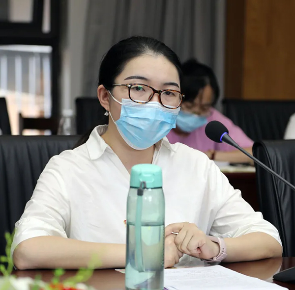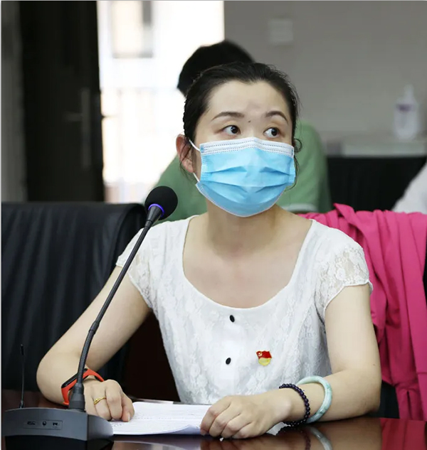 计算机学院学生党支部书记余薇介绍了学生党员积极投身抗疫志愿服务、加强学生党支部建设、党员教育管理、发挥党员先锋模范作用的经验做法。