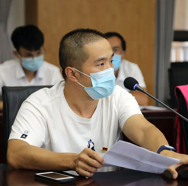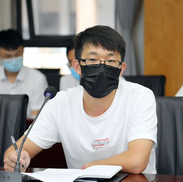入党积极分子代表、科研处魏亚飞介绍了在毕业生返校期间下沉基层,为毕业生打包搬运行李,用辛勤的汗水为毕业生提供温馨、周到的服务,以实际行动积极向党组织靠拢的切身体会。
