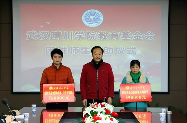 捐助仪式上,董事长汪彬教授代表学校教育基金会分别为他们捐助现金5万元。除此之外,今年4月,汪彬董事长还亲自到医院将5万元救助金送到杨雨晴手中。至此,加上晴川师生为两个家庭线上线下筹集的25万元善款,合计40万元帮助他们解决了燃眉之急。、