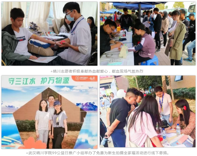 近年来,武汉晴川学院一直秉承“仁爱天下,克难奋进”的学校精神,从在全国同类高校中率先成立教育基金会,到99公益日保护三江源活动中,3天发动近三万人次募集101万善款,又到全校师生总动员,捐款20余万元帮助患非霍奇金淋巴癌学生戴晨战胜病魔,创造生命奇迹,重返校园,再到晴川志愿者奉献热血播撒爱心,一天时间献血近17万毫升,学校精准扶贫连续三年受到省政府表彰……大爱晴川、仁民爱物的精神,在晴川校园历久弥新。