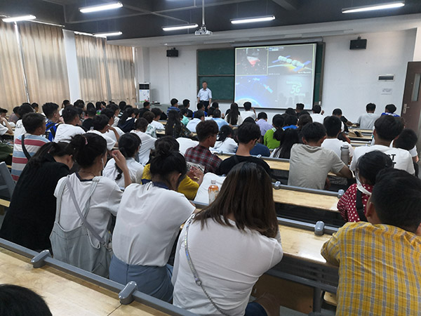 接着,夏建国主任从“民族危机 艰难求索”、“新中国开辟了中华民族伟大复兴的新历程”、“辉煌70年 成就满乾坤”、“走进新时代 奋斗创未来”四个方面进行了深入浅出、活泼生动、激动人心的讲述。宣讲中他结合自己亲身经历和体会与现场同学互动,气氛热烈。讲到动情处,他还即兴朗诵了毛主席的《七律二首·送瘟神》“春风杨柳万千条,六亿神州尽舜尧……”引得现场阵阵掌声。在宣讲的最后,夏建国主任送给青年学生两句感悟:“用理性的态度对待生活,用感性的态度对待学习”,用理性对待生活中的纷乱事务,可以过上积极、健康的生活;用感性对待学习,可以避免知识实用化、学习无用论等陷阱,可以做到崇拜知识、主动求知。宣讲在阵阵热烈的掌声中结束,大家纷纷表示期待夏建国教授下次的精彩宣讲。