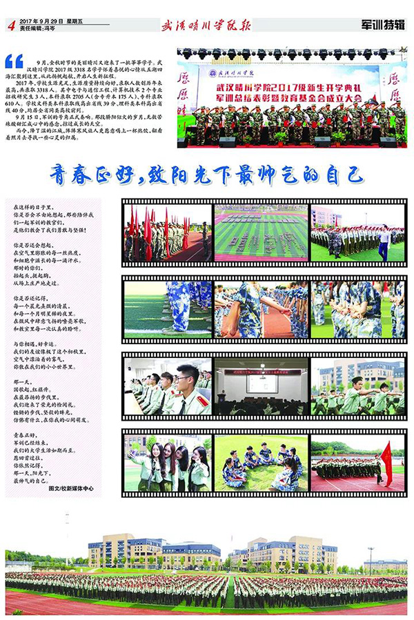获得版面类三等奖的《武汉晴川学院报》军训特辑,将晴川学子的军训瞬间以胶片风格呈现,图文配合,充分展示了同学们的军训风貌,整个版面洋溢着青春的气息。