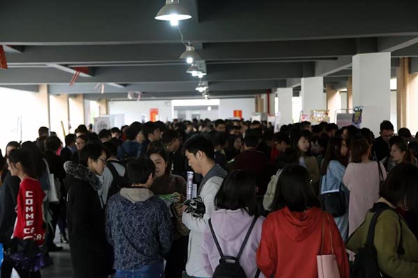 深秋寒风凛冽,龙泉秋雨迷离。11月7日下午,武汉晴川学院2018年秋季大型招聘会拉开帷幕。招商银行、恒大地产、武商集团、周黑鸭公司等150多家企业齐聚晴川招揽人才,提供就业岗位逾5000个,吸引了千余名应届毕业生前来求职。