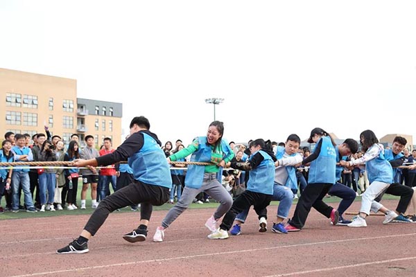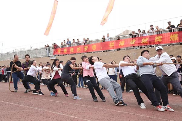 最后一项备受瞩目的拔河比赛,振奋人心的鼓点、气势恢宏的音乐,都在为老师们鼓舞士气。这是一场力量与技巧结合的比赛,每一位教职工们都用尽全力,为自己的团体增光添彩。