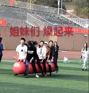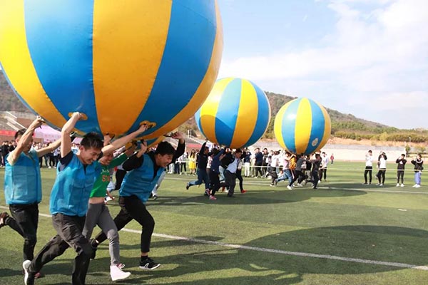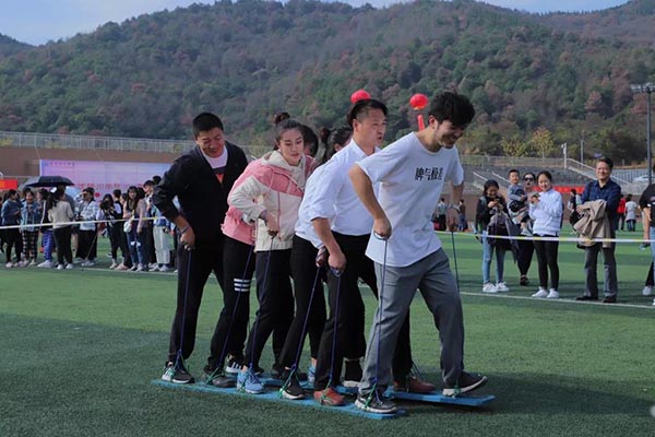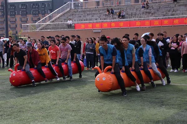 在响亮的口号和欢呼加油声中集体项目相继开始,每一项都十分考验参赛者之间的默契配合。