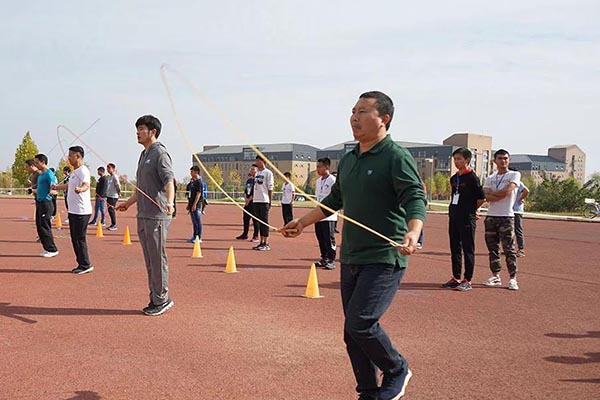 男女单人跳绳比赛,老师们展现了丝毫不亚于学生们的活力。