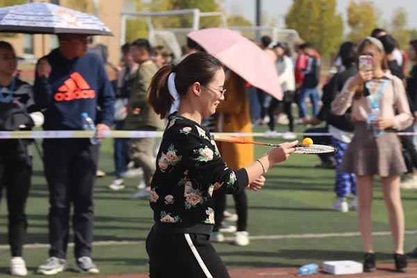 创意十足的50米羽毛球拍托乒乓球竞技跑,老师们在全力冲刺的同时还需兼顾球拍上的乒乓球。