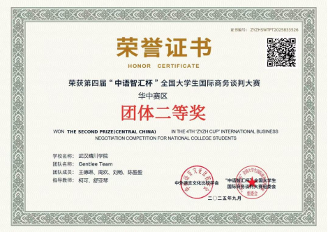 “Gentlee Team”队长王德琳同学在赛后表示:“这次比赛为我们提供了将理论知识付诸实践的宝贵平台。从案例分析到策略制定,从团队协作到现场发挥,每一个环节都充满挑战,也促使我们不断成长。感谢指导老师的耐心指导和队友们的紧密配合,这段经历加深了我们对国际商务谈判的理解,也增强了未来从事相关领域工作的信心。”