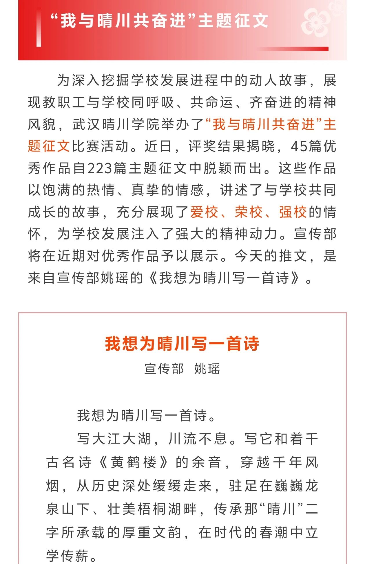 《唱起来,武汉晴川学院校歌<晴川颂>正式发布》