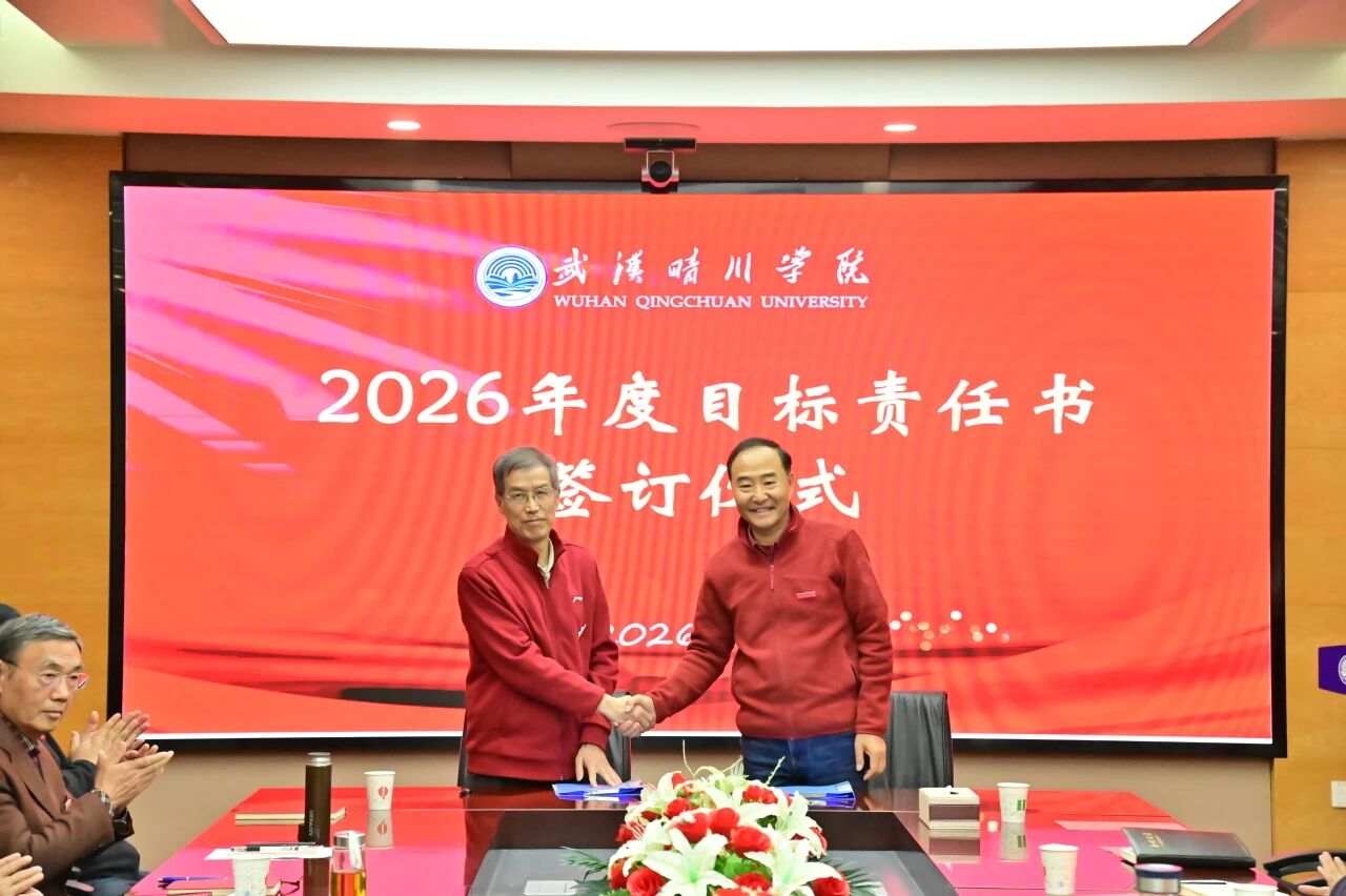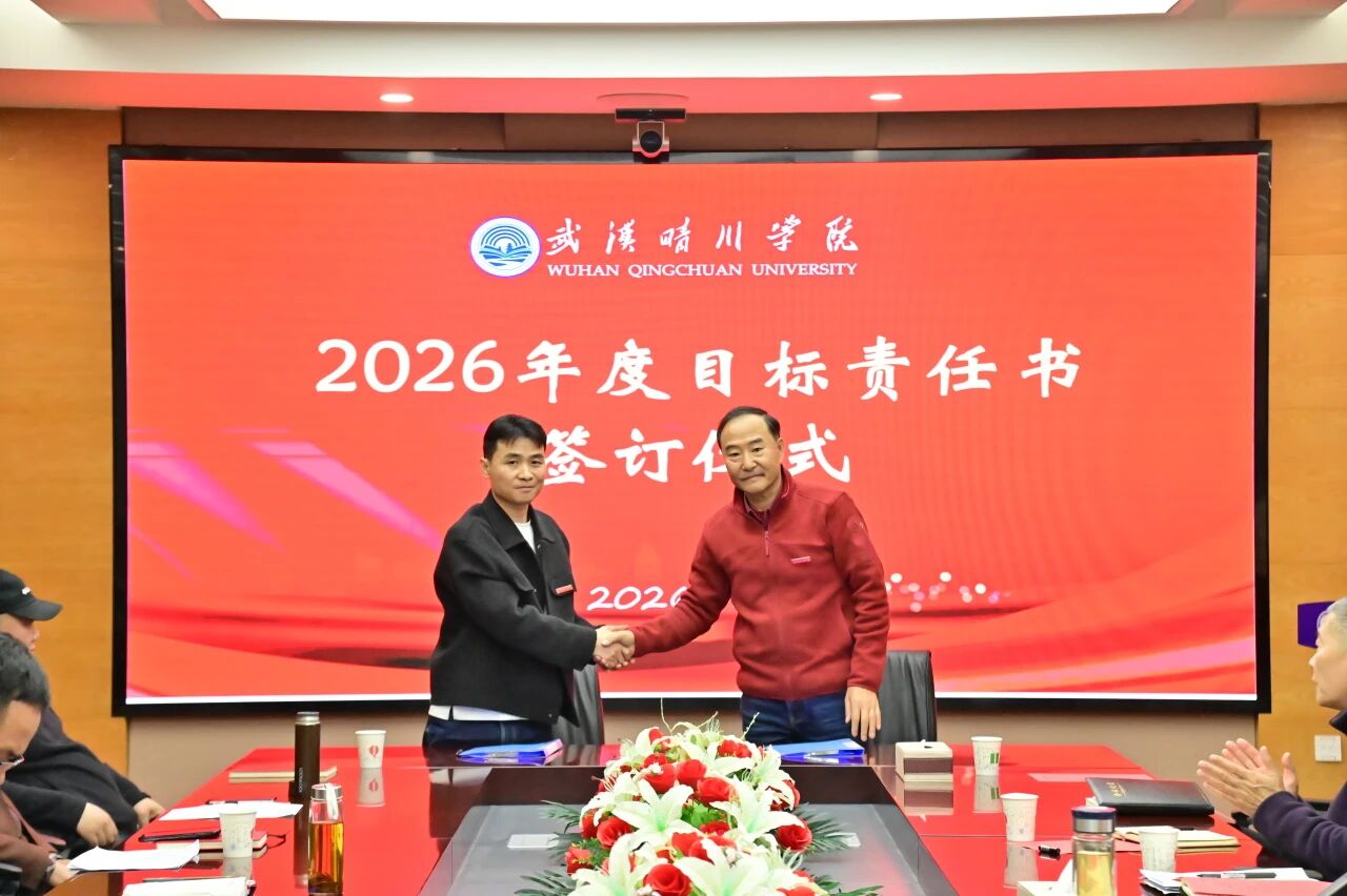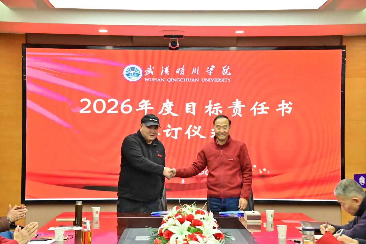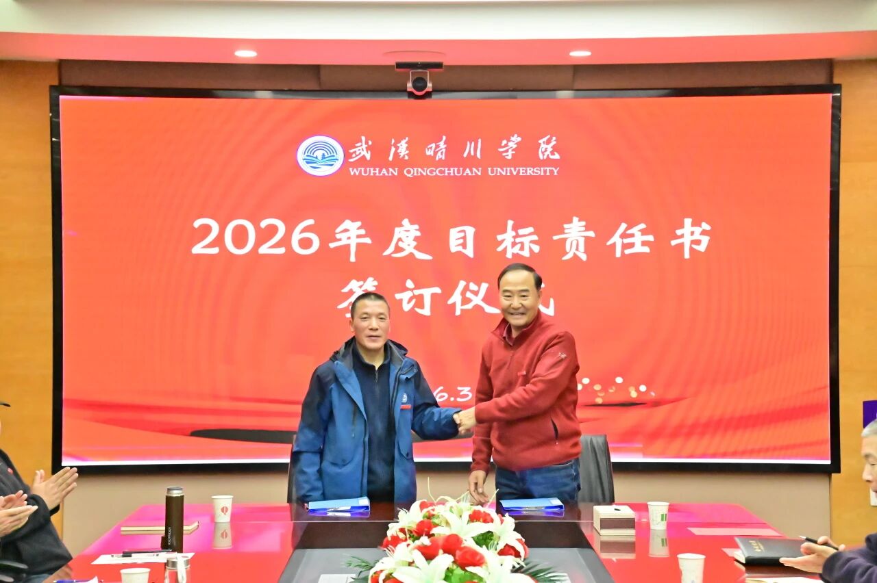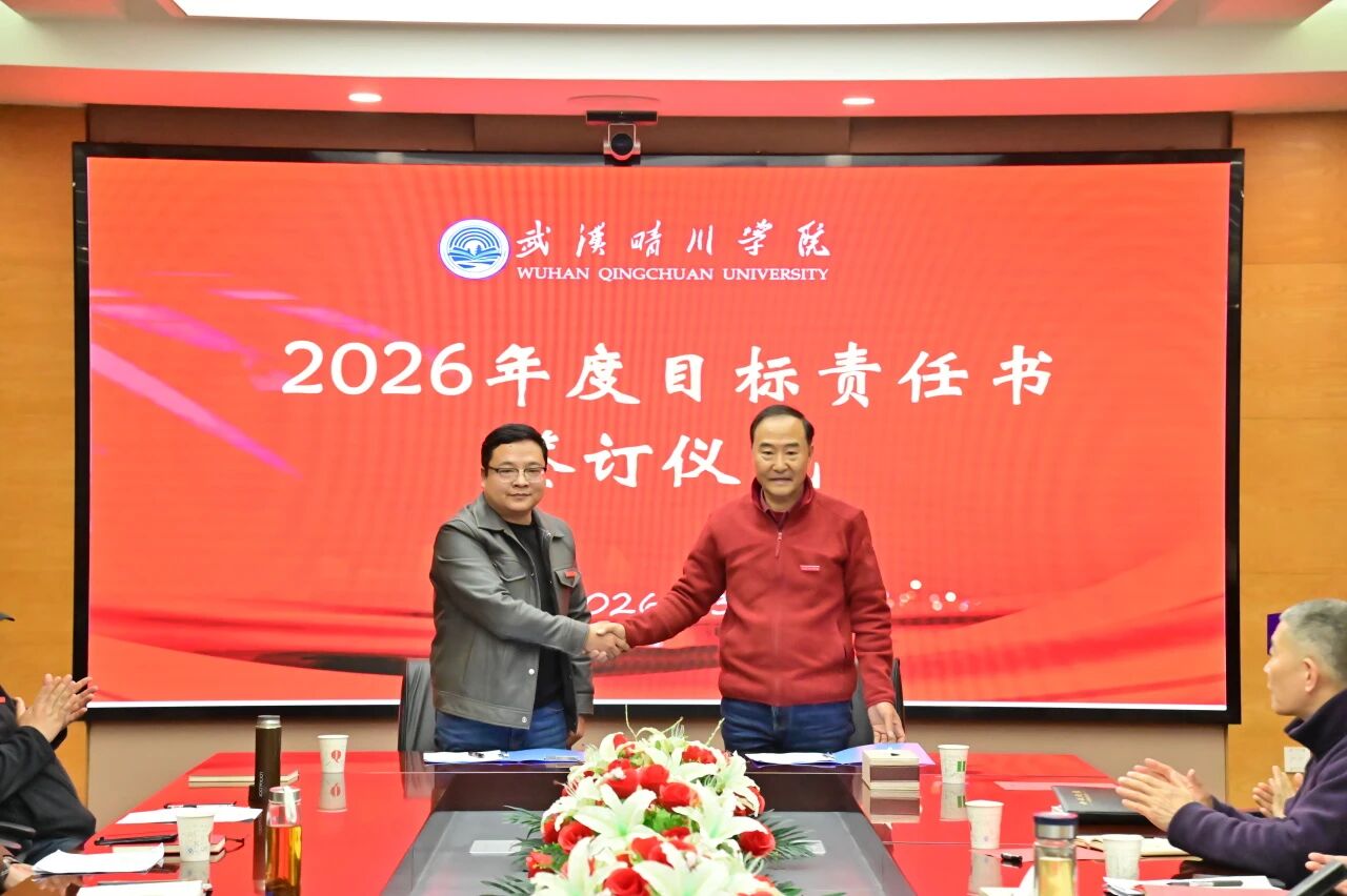 锚定目标启新程,乘势而上谱新篇。3月30日下午,武汉晴川学院2026年度目标责任书签订仪式顺利举行。董事长、校长汪彬教授出席并讲话,全体校领导、各二级学院(课部)院长(主任)、各职能部门负责人参加。仪式由副校长彭宇文主持。