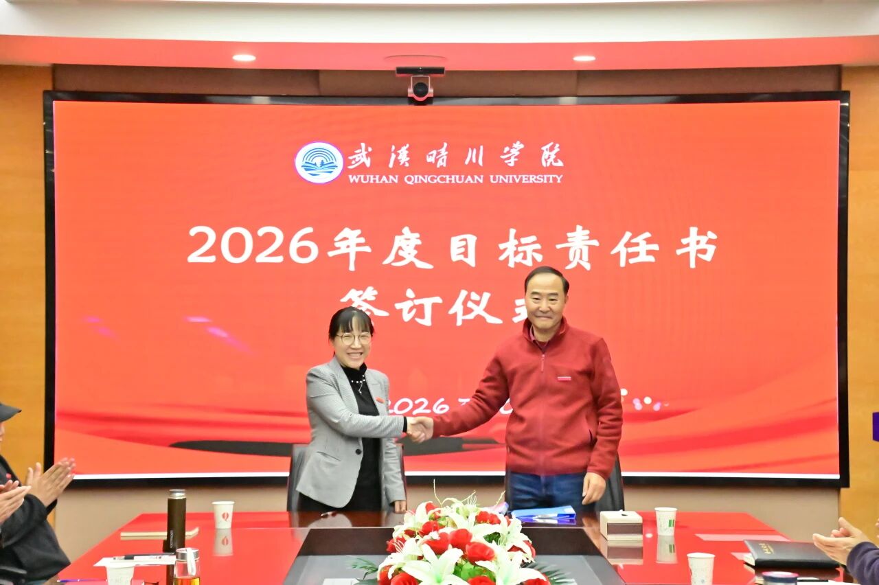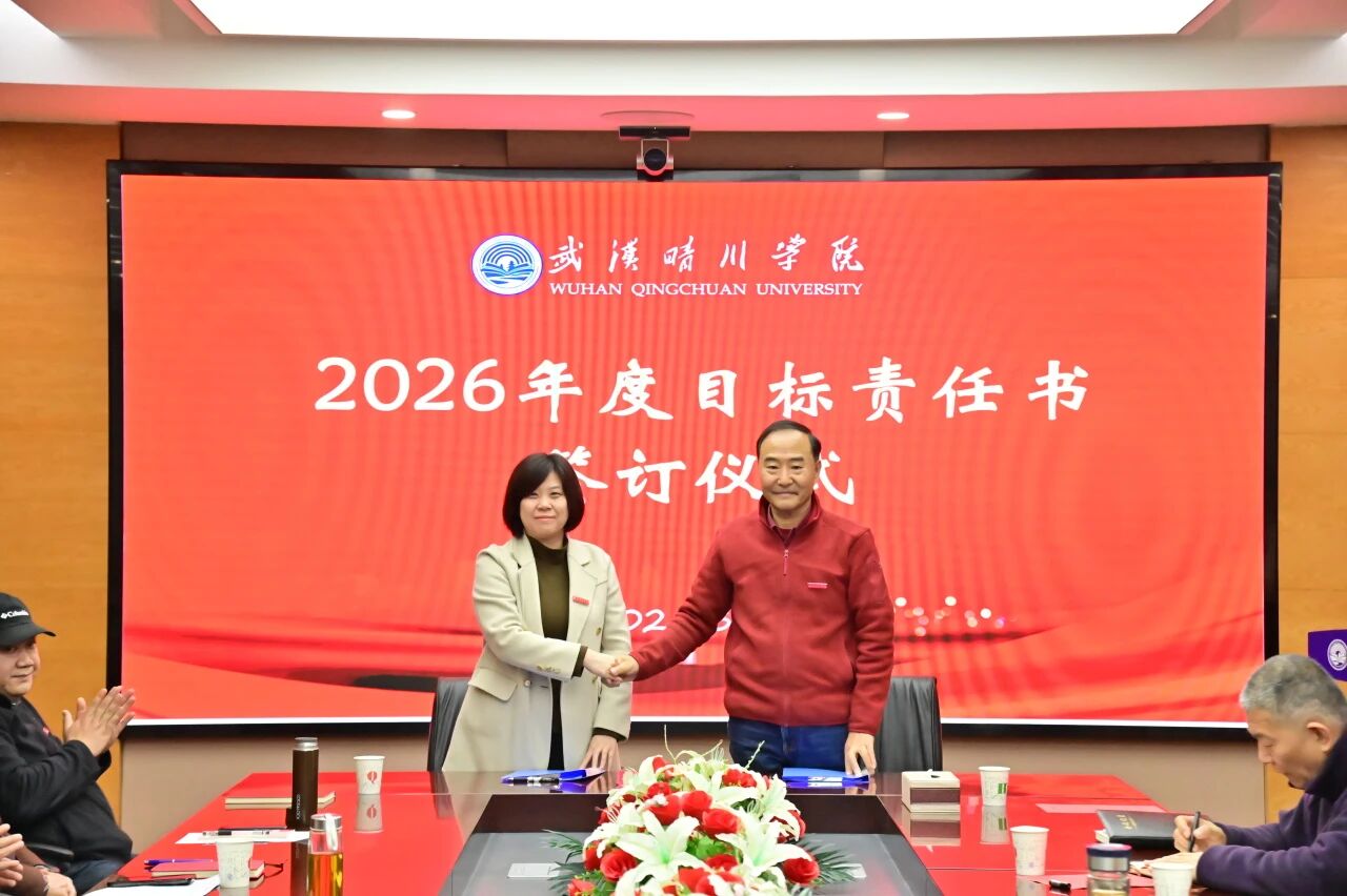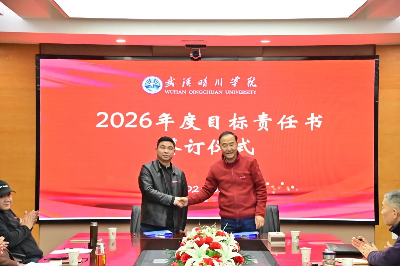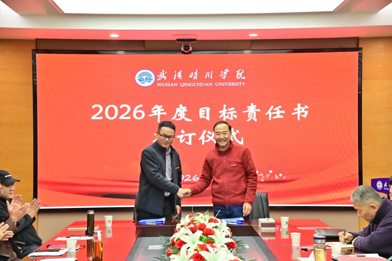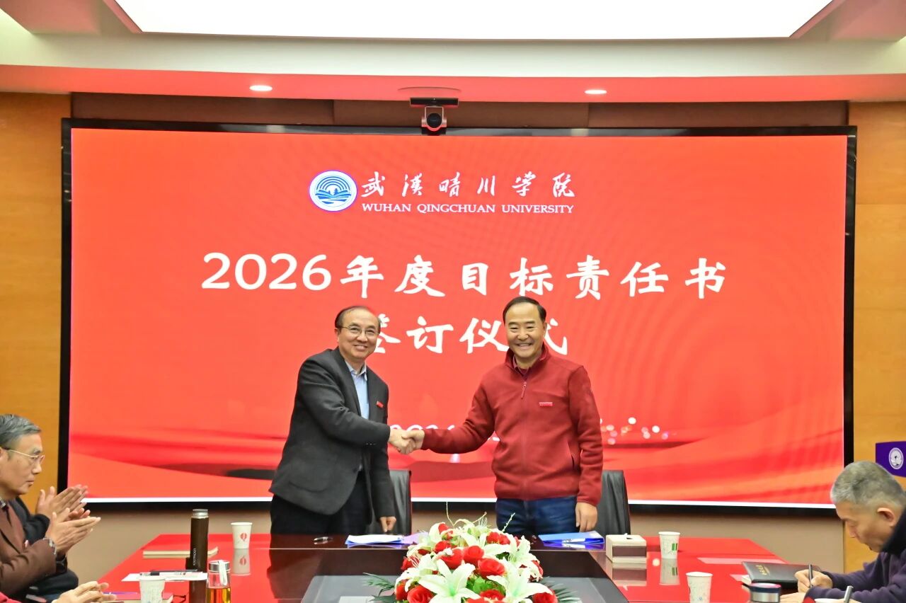 锚定目标启新程,乘势而上谱新篇。3月30日下午,武汉晴川学院2026年度目标责任书签订仪式顺利举行。董事长、校长汪彬教授出席并讲话,全体校领导、各二级学院(课部)院长(主任)、各职能部门负责人参加。仪式由副校长彭宇文主持。