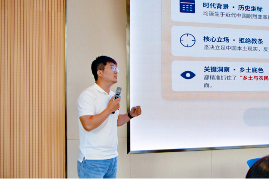 两位重量级嘉宾的分享引发了现场教职工的强烈共鸣,随后的交流环节中,两位青年教师代表也和大家分享了自己的阅读故事与感悟。来自传媒艺术学院的方庆一老师分享了自己的亲身经历和阅读故事,她通过阅读文学经典、中东研究、旅行文学、历史传记等书籍,让阅读内化为生活方式,在忙碌中保持精神滋养与自我成长,并将阅读中收获的方法运用到学习与教学中,分享了番茄工作法、费曼学习法等实用阅读技巧,鼓励大家找到适合自己的阅读方式。来自马克思主义学院的腾跃老师对他阅读的两本经典书籍——《中国社会各阶级的分析》与《乡土中国》进行了重读分享,从社会学与政治学的双重视角进行了深入解读,展现了青年教师结合专业深耕阅读、以阅读赋能教学的思考。