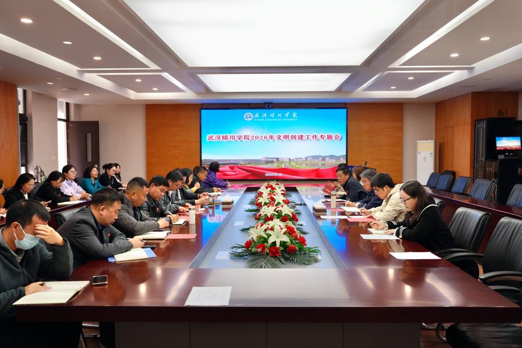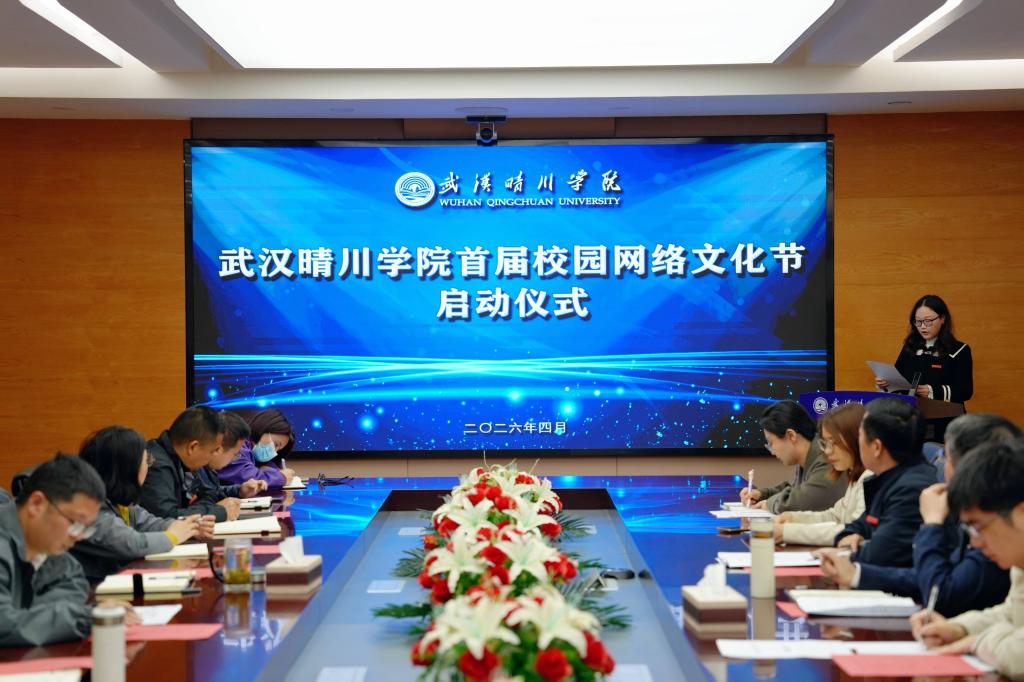 (来源:党委宣传部)4月23日下午,武汉晴川学院召开2026年文明创建专题会暨首届校园网络文化节开幕式。党委书记翟细春出席会议并讲话,党委副书记、副校长向巍,副校长罗宏运出席会议。各二级学院党总支(副)书记、各职能部门负责人及师生代表参加。会议由副校长罗宏运主持。