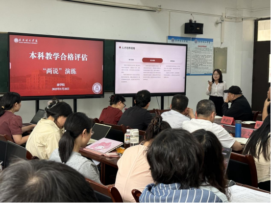 汇报结束后,彭校长、蒋老师与王督导分别进行了点评。彭校长指出,“两说”演练的核心目的在于高度凝练学院办学及专业建设成果,充分展示亮点与特色,并明确指出不足及未来努力方向,以便让全体教师能全面了解学院与专业情况。他认为,整体上6个汇报基本符合要求,但建议数据准确、特色亮点突出、人才培养质量保障做法和立足未来挑战问题。专业汇报要求各专业提法需与学校、学院保持一致。