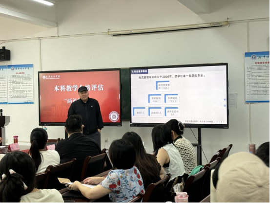 商学院何院长率先进行了“院长说学院”汇报,主题聚焦于“专业融通、协同育人”的特色方向教学。从学院的学院概况、实践探索、主要成效以及持续改进四个方面展开,全面呈现了商学院的办学理念与成果。他指出,商学院前身为电子商贸学院,2017年更名为商学院,目前设有5个本科专业和2个专科专业,在校学生1600余人。学院教职工人数89人,其中教授6名,双师双能型教师比例达到31%。建设以国家双循环新发展格局为指导,“大数据与电子商务”优势特色学科引领,国际经济与贸易、电子商务为主体,物流管理、金融科技、市场营销为支撑的数字商务与数字贸易专业集群建设以国家双循环新发展格局为指导,“大数据与电子商务”优势特色学科引领,国际经济与贸易、电子商务为主体,物流管理、金融科技、市场营销为支撑的数字商务与数字贸易专业集群。立足湖北,面向全国,坚持党建引领,坚持立德树人,秉承“三位一体”教育理念,践行OBE培养路径,深化“一主体,三融合”人才培养模式,培养交叉复合型、创新型、应用型高级专门人才。主要成效是1个省级优势特色学科、1个省级教学成果奖三等奖、2个省级优秀基层教学组织、3门省级一流课程、1个省级优秀中青年科技创新团队、4个教育部产学合作协同育人项目等。