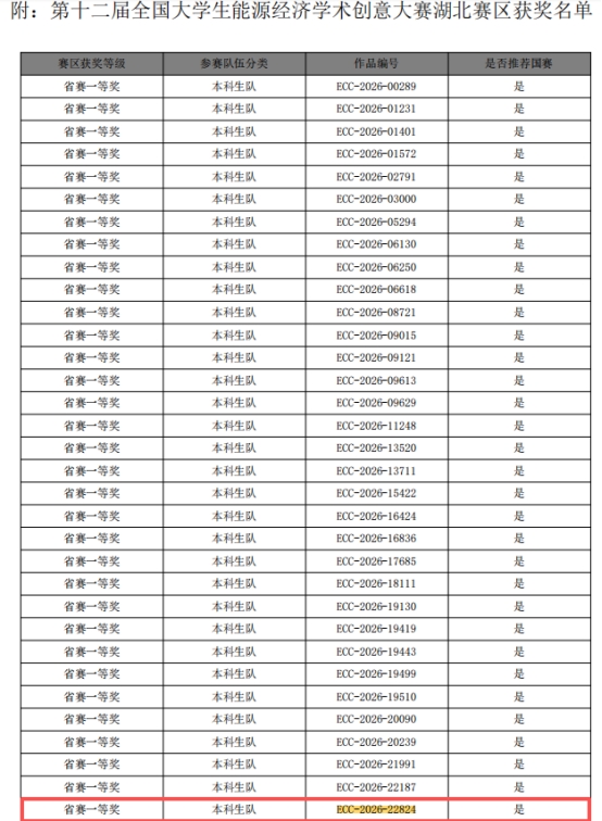 我校创新创业学院自去年10月全国大赛开启报名以来,精心动员组织大赛有序开展,报名数量在湖北省内高校排在前列,历经初审、校外专家评审、线下集中会评、现场答辩等环节,选拔出了大量高质量作品。各参赛作品在指导老师的精心指导下,紧扣能源经济发展前沿与“双碳”战略核心议题,覆盖研究论文、调研报告、创新创业三大类型,涉及优化建模、计量分析、能源大数据与人工智能等多个研究方向,充分展现了我校学子扎实的专业功底与创新能力,我校创新创业学院院长许潇丹老师应邀出席了本次大赛开幕式。此次斩获两项省一等奖,共获得21项省奖,创下参与该赛事以来的最好成绩,充分展现了我校在能源经济交叉学科教育中的丰硕成果。