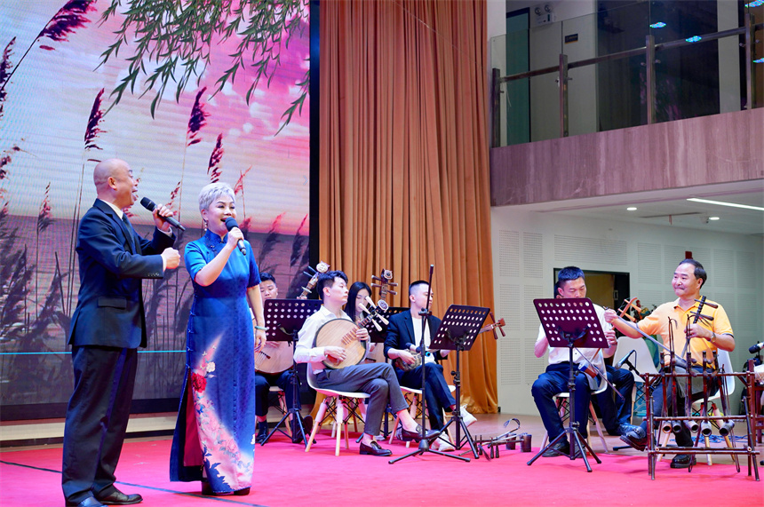 “今晚的演出,我最喜欢《智取威虎山·深山问苦》选段,如金戈铁马,三擂战鼓气吞虹,气宇轩昂,撼人心魄。”来自外国语学院的学生张艺龙,点评起各个曲目头头是道,“我特别喜欢京剧,可以说是‘资深票友’。”