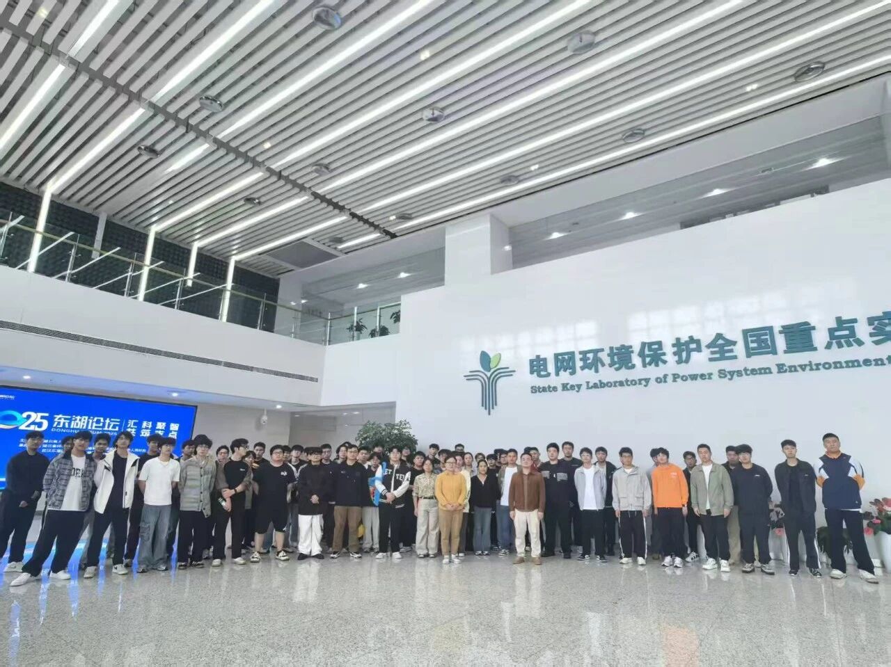 “欢迎来到电网环境保护全国重点实验室!”基地讲解员令洁琼热情接待师生一行。在介绍大厅,同学们集中观看了国家西电东送工程与高效电缆输电宣传片,对该基地的科研布局形成初步认识。该基地占地约361亩,牵头承担了百余项国家级及国家电网公司科技项目,获国家科技进步特等奖2项、一等奖1项、二等奖3项,省部级科技奖励50余项,授权发明专利254项,是我国特高压领域重要的科研试验平台。