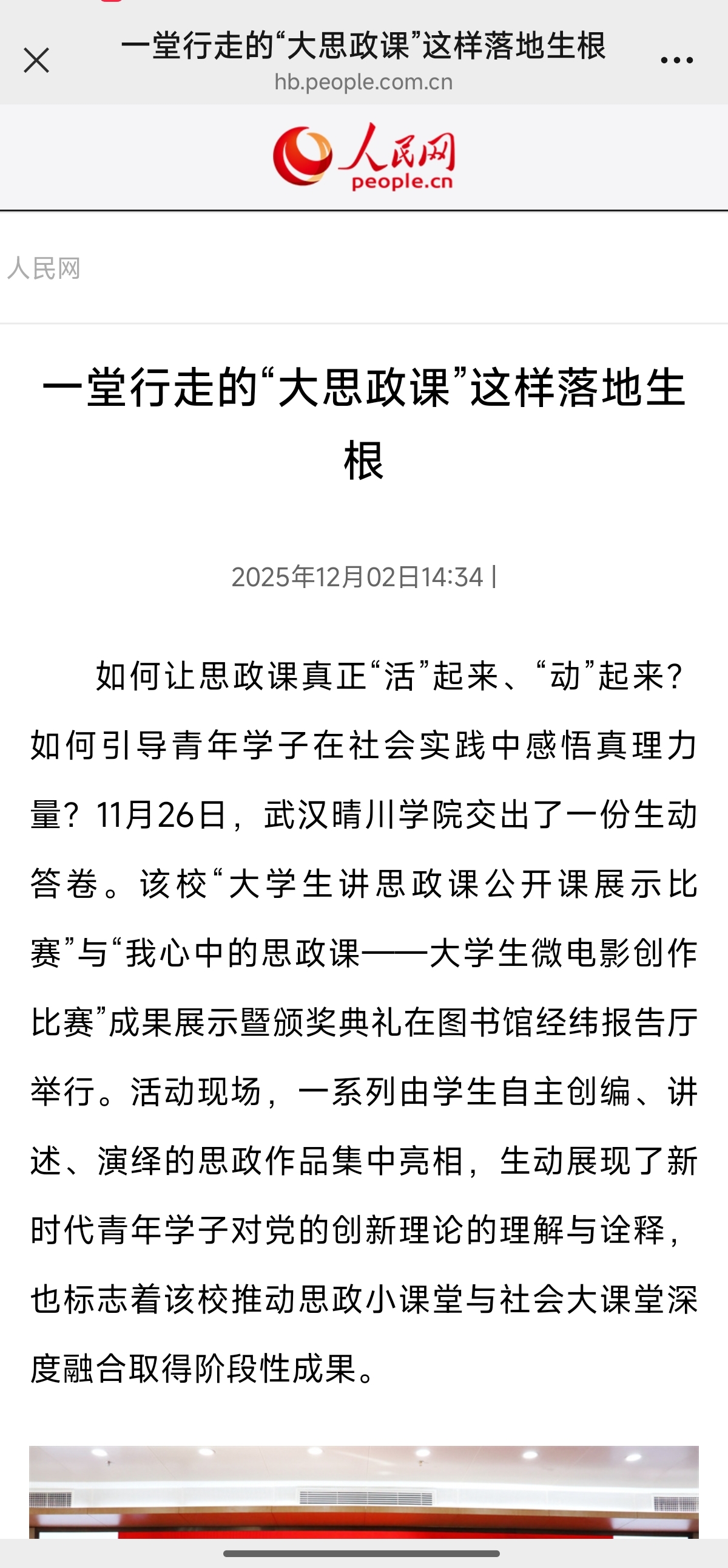 据悉,本次成果展示暨颁奖典礼是武汉晴川学院持续推进“大思政课”建设的一个缩影。学校始终致力于创新思政教育形式,拓宽育人路径,通过以赛促学、以创践思,有效激发了学生的学习主动性与创造力。学校将继续深化“大思政课”建设,不断增强思政教育的时代性与感召力,激励广大学子在火热实践中书写青春篇章,让思政育人之花在校园内外绚丽绽放。(文/图 姚瑶 施禾羽子 编辑:姚瑶)